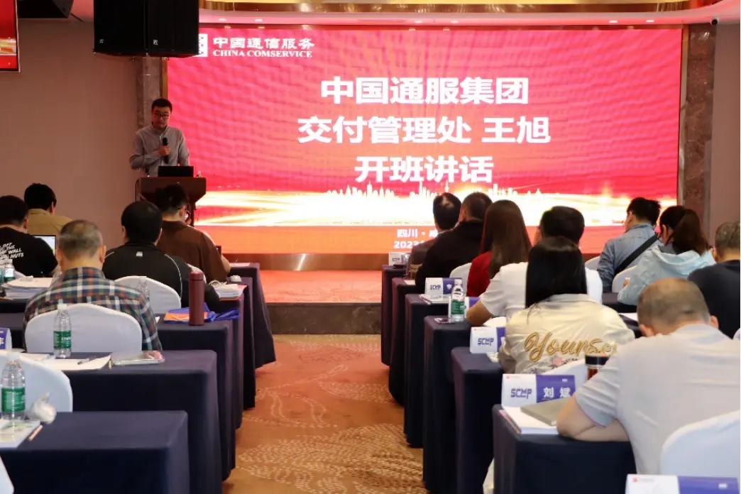此前,来自中国通服全国各地专、分公司的140多名学员报名参训。本次培训是中国通服首个SCMP内训班,中国通服交付管理处王旭,四川邮电职业技术学院党委书记刘柏桦出席开班仪式。